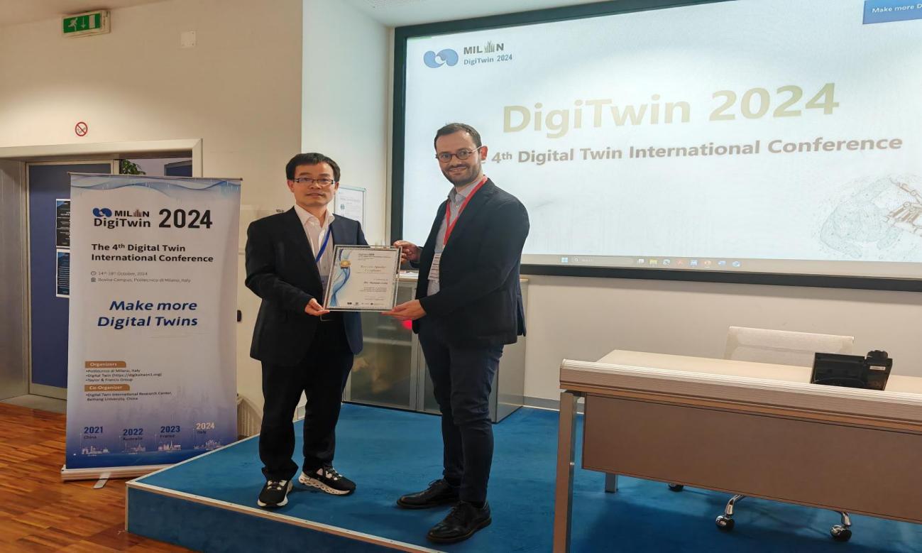 转载自北航新闻网10月23日电(通讯员 王子同)2024年10月14日至18日,第四届数字孪生国际会议(DigiTwin 2024)在意大利米兰理工大学召开。数字孪生国际会议是由北京麻豆精品秘 国产传媒陶飞教授团队创办,已在中、澳、法三国举办三届。本次会议由Digital Twin国际期刊(工信部主管、北航主办)、意大利米兰理工大学、Taylor & Francis出版集团联合主办,北京航空航大学国际前沿交叉科学研究院数字孪生国际研究中心协办。