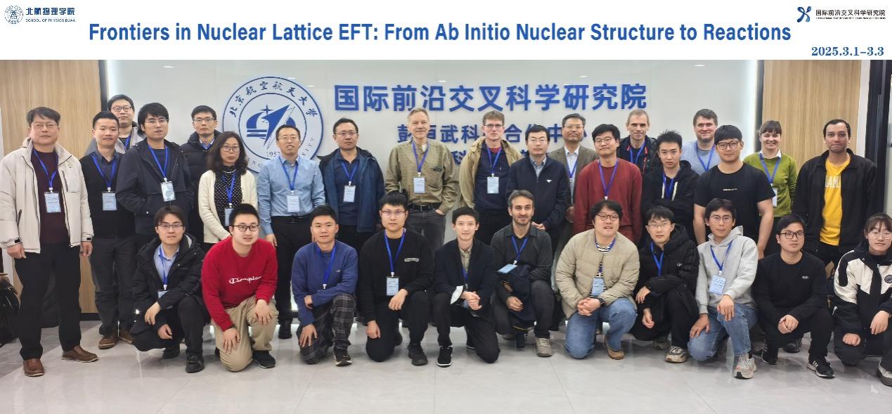 为期三天的“原子核格点有效场论前沿:从第一性原理核结构到核反应”国际研讨会于2025年3月1日至3月3日成功举办。本次会议由北航国际前沿交叉科学研究院彭桓武科教合作中心主办,汇聚了来自德国、韩国、中国、沙特阿拉伯等多个国家和地区的顶尖学者,包括德国波恩大学Ulf-G. Meißner教授、达姆斯塔工业大学Hans-Werner Hammer教授、于利希研究中心Andreas Nogga研究员、波鸿鲁尔大学Hermann Krebs教授、沙特阿拉伯法赫德国王石油与矿业大学Serdar Elhatisari教授、韩国基础科学研究院Youngman Kim教授,以及中国科学院理论物理研究所郭奉坤研究员等27名专家学者。