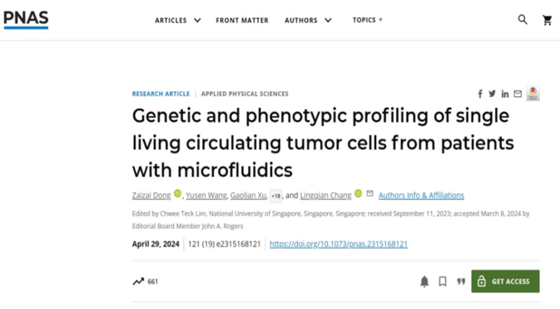 2024年6月,常凌乾教授团队开发出一种新型纳米医疗芯片,能在微观层面快速检测肺癌循环肿瘤细胞(CTCs)的PD-L1基因表达,并评估肿瘤细胞对免疫细胞的反应,研究成果发表在《PNAS》上,标志着北航在生物芯片研究领域达到国际领先水平,为肺癌患者的个性化治疗提供了强有力的科技支撑。