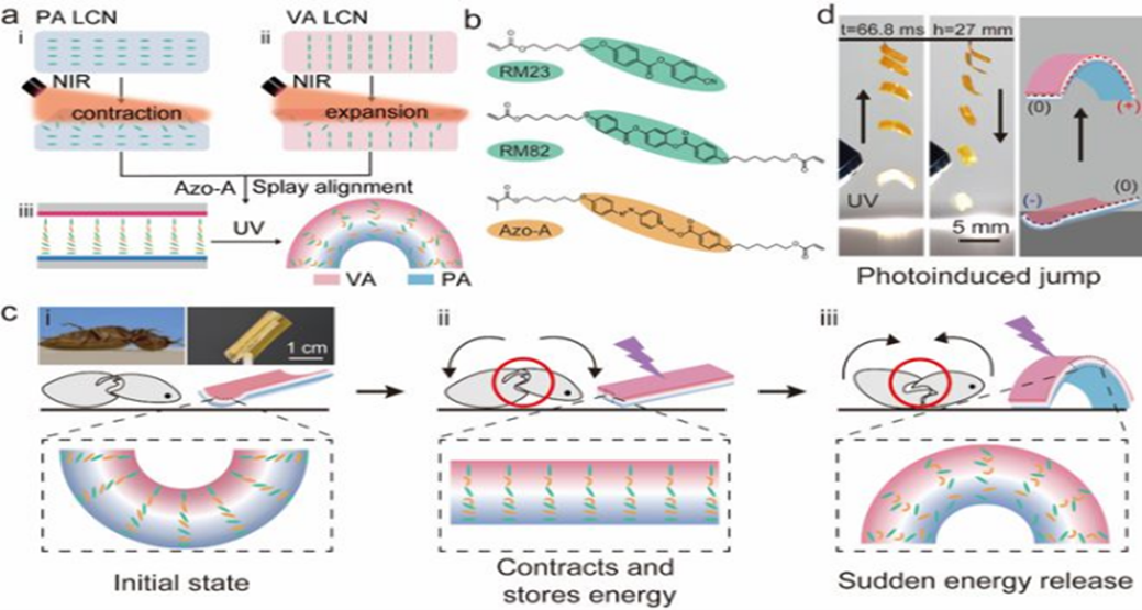 受具有特殊卡扣结构的磕头虫启发,江雷院士和中国科学院理化技术研究所王京霞研究员团队,设计了类磕头虫卡扣结构的光跳跃材料,以“Click-Beetles-inspired Light-driven Continuous Jumping Robots Based on Janus Azobenzene Polymer Films”为题发表在《Advanced Functional Materials》期刊。