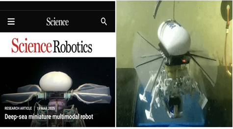 (转载自校新闻网4月2日电)2025年3月22日,CCTV《新闻联播》报道北京麻豆精品秘 国产传媒机械工程及自动化学院研究团队联合中科院深海所、浙江大学,在技术开发中另辟蹊径,历经6年共同研发出深海小型多模态机器人,该成果汇集了智能驱动、力学及机器人控制等专业方向的交叉研究,为深海探索带来更多可能性。该成果于2025年3月20日发表在国际学术顶刊《科学·机器人》(Science Robotics),并得到新华社、央视《新闻直播间》、人民网、《科技日报》、《中国教育报》等多家主流媒体的报道。