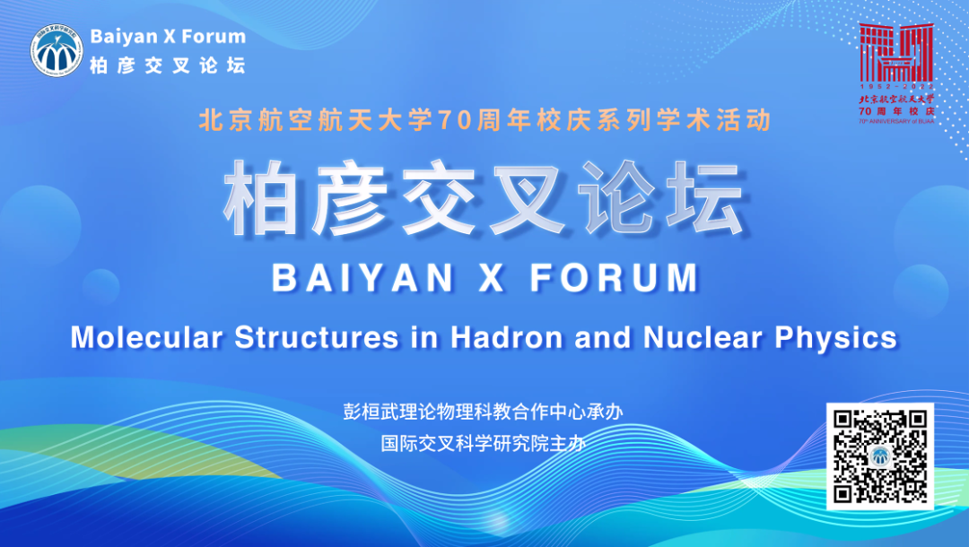 2022年10月28日,由北京麻豆精品秘 国产传媒国际交叉科学研究院主办,彭桓武科教合作中心承办的第一期北航柏彦交叉科学研究论坛,简称“柏彦交叉论坛”(暨北航-理论所彭桓武论坛第三讲),于北京时间20:00在线举行。本期论坛的主题为“强子和核物理中的分子结构(Molecular Structures in Hadron and Nuclear Physics)”。