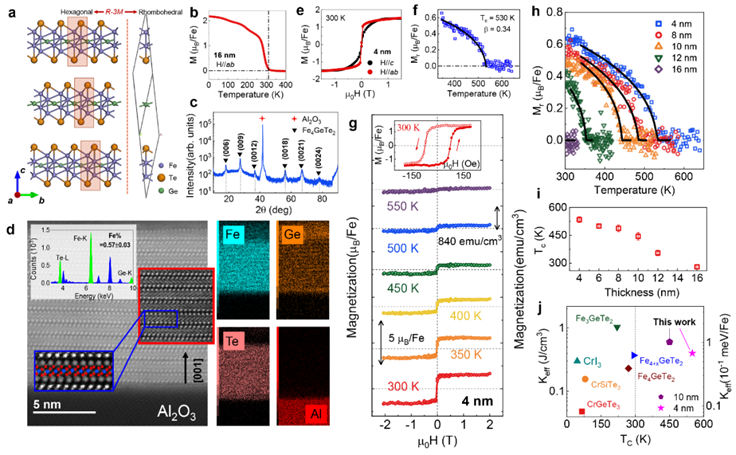 图 1 二维磁性Fe4GeTe2的晶格结构与磁性表征