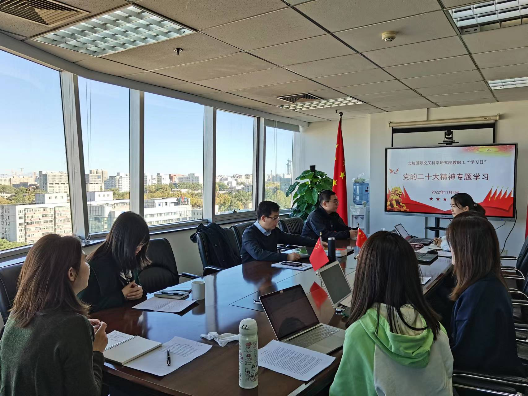 根据学校统一安排部署,结合学校学习要求,2022年11月4日上午10时30分,国际交叉科学研究院在柏彦大厦1006会议室召开专题学习会。院党委书记陶飞主持会议,全体教职工认真学习贯彻党的二十大精神并一一发言。