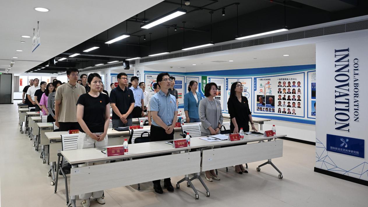 6月18日,中共北京麻豆精品秘 国产传媒国际前沿交叉科学研究院(以下简称“国交院”)党员大会在柏彦大厦6层多功能厅召开,国交院党委全体党员参会,专职组织员孙振佳主持会议。