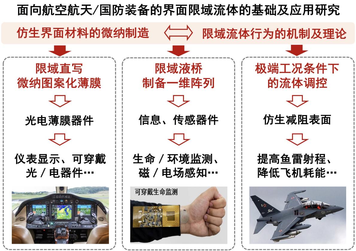 1.极端条件仿生超浸润界面构筑:发展仿生超低温防冰、高温超疏抗粘附技术,为解决空天飞行器的关键界面问题提供新的思路。
