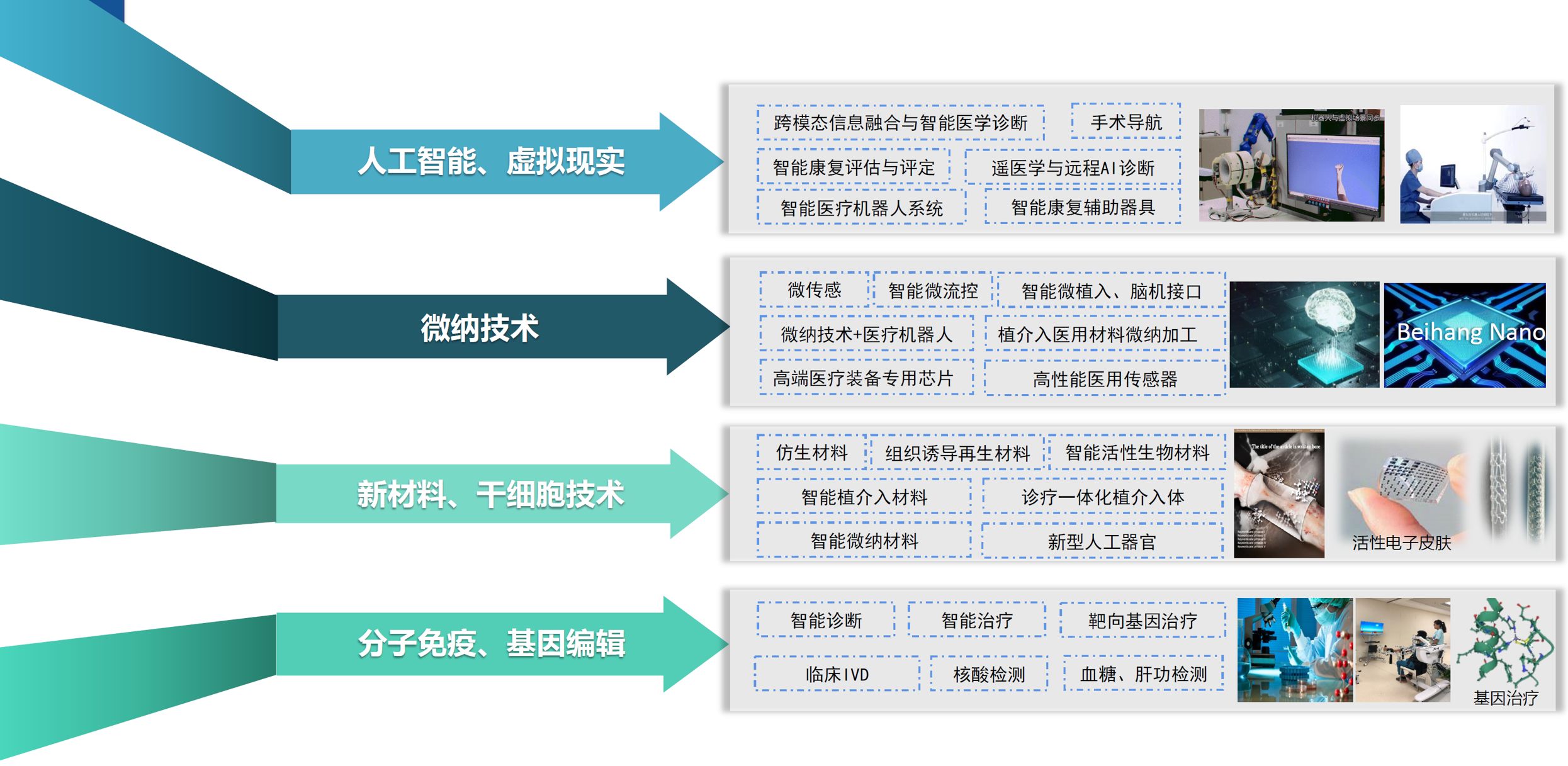 (1)搭建医学人工智能平台,生物信息系统平台,健康大数据构建,数字终端平台和智能高端医疗装备整合平台。